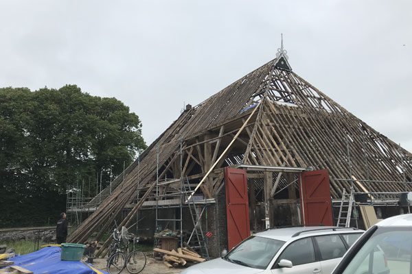 Bijna het gehele dak is voorzien van nieuwe juffers. (AKB)